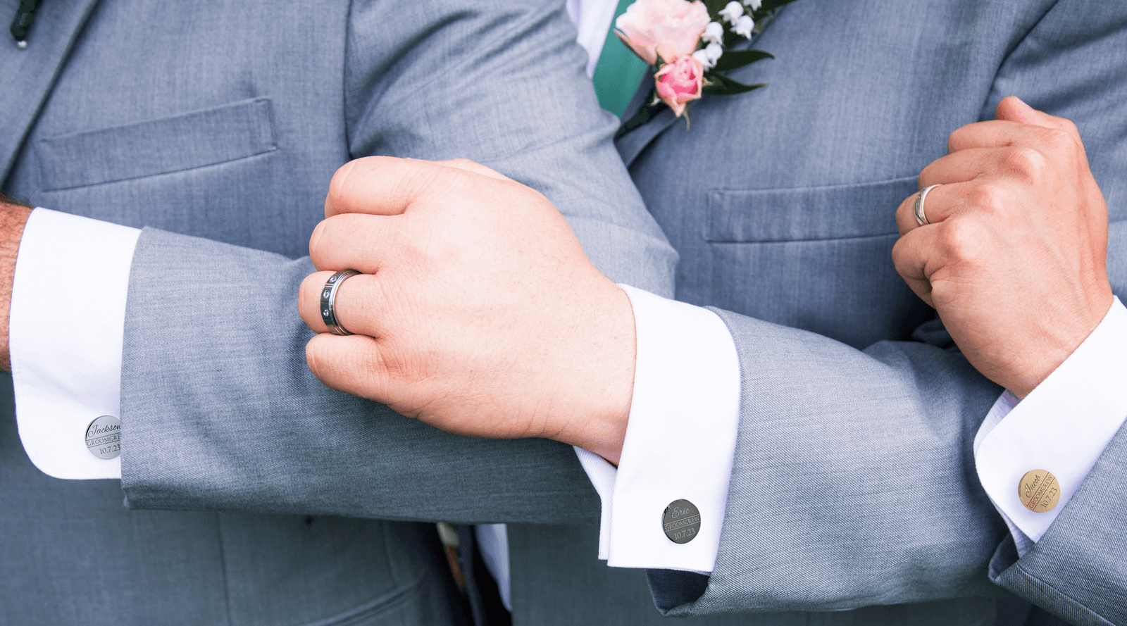 The Father of the Groom deserves to look polished, too! Personalize these "A son's first hero" cufflinks with the wedding date and the Groom's name to make the gift extra special.