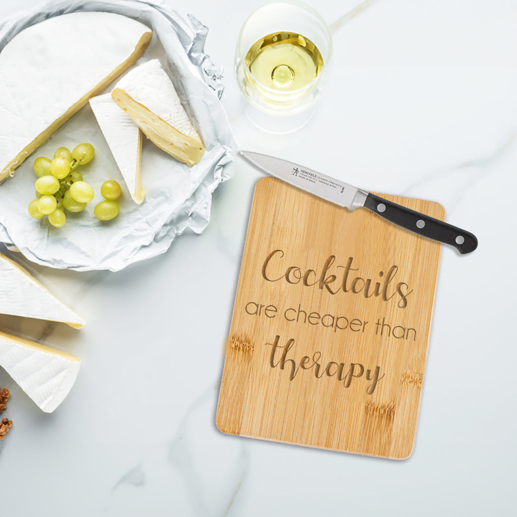 Cocktails are Cheaper than Therapy - Bamboo Bar Board - 6 x 8 inches